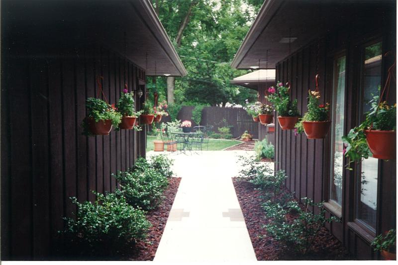 Across the street was a park which was one more bonus. The garage was detached, but it was built to look like the house - sort of a mini version of it. This also gave us the ability to decorate between the two. You can see my emphasis on symmetry!