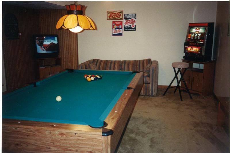 Downstairs was another bedroom (not sure why I don't have a picture of the second bedroom upstairs) and the recreation room. It was a pretty cool place with a slot machine and TV and pool table. There was also a wet bar in the room. The problem was, I hardly ever used it.