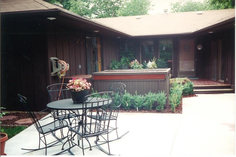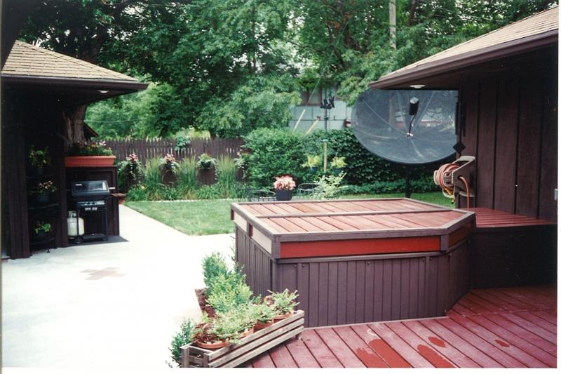The house wrapped around a back deck, patio and back yard. It was extremely private. I built the deck. The part that you see which matches the deck, but is elevated, is the cover for a hot tub. I didn't want just a plastic cover, so I custom made it so that it just looked like an extension of the deck. I also put in a door from the Master Bedroom to the deck so that it would be easy to get into and out of the hot tub at night.