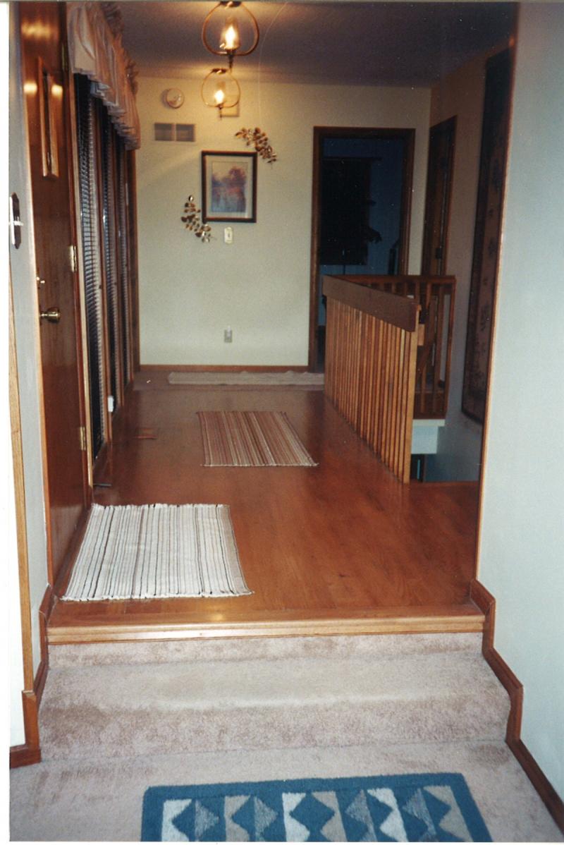 I put a wood floor down in the foyer. On the left side of the foyer were windows that looked out onto the deck and back yard.