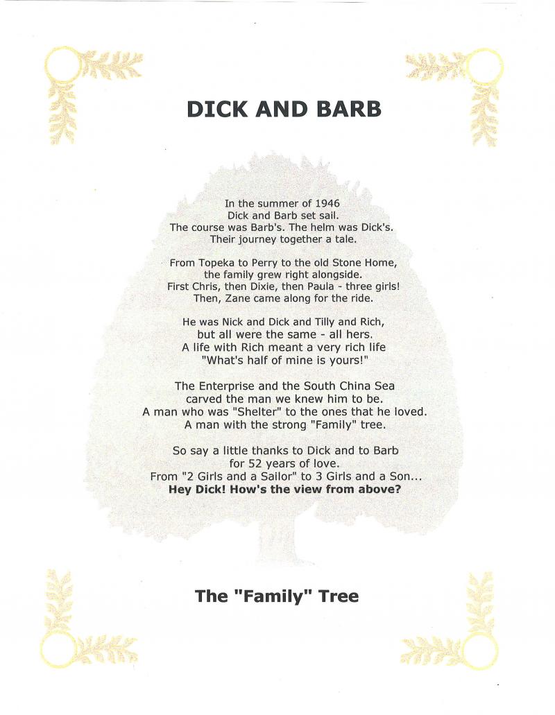 Dick served on The Enterprise in WWII and he was known by the term "Shelter" because the family knew he would always protect them.